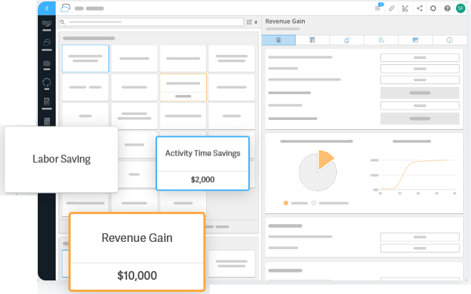 - Collaborate live—quantify benefits, costs, and ROI together in real time.